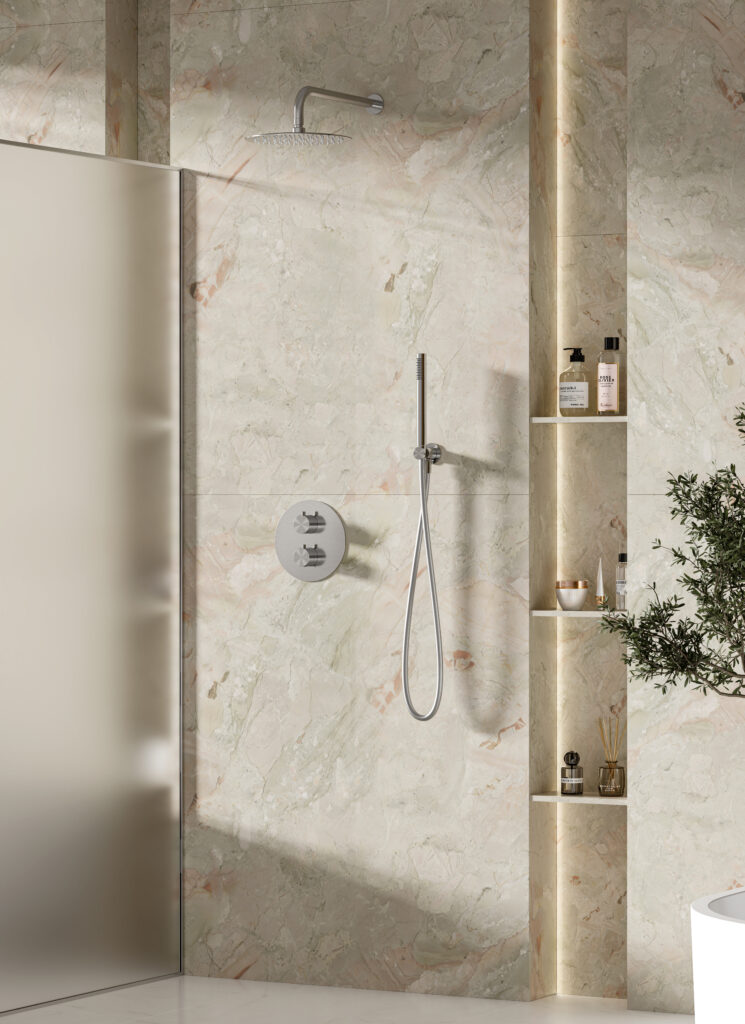 - Brushed Steel φινίρισμα. Το μοντέρνο brushed steel φινίρισμα προσδίδει στη νέα σειρά ένα κομψό και διαχρονικό look, που ταιριάζει σε κάθε σύγχρονο μπάνιο ενώ το αναβαθμίζει.